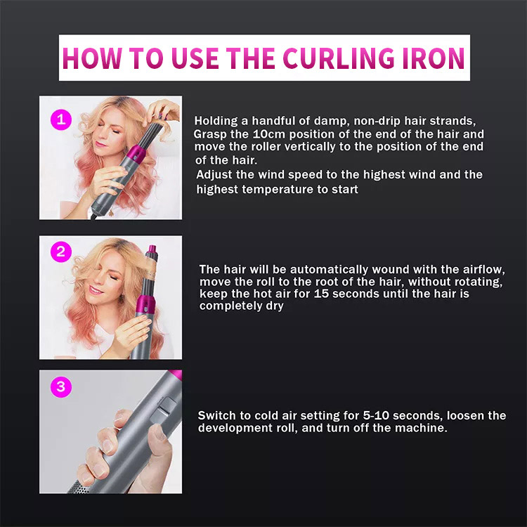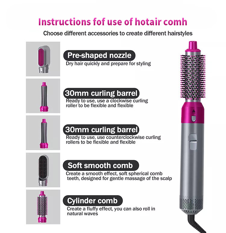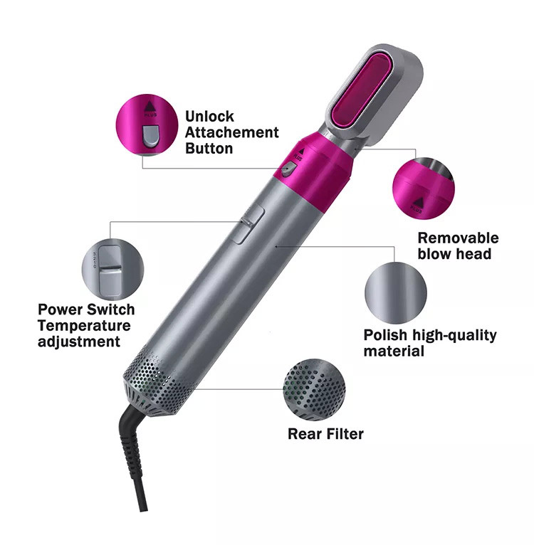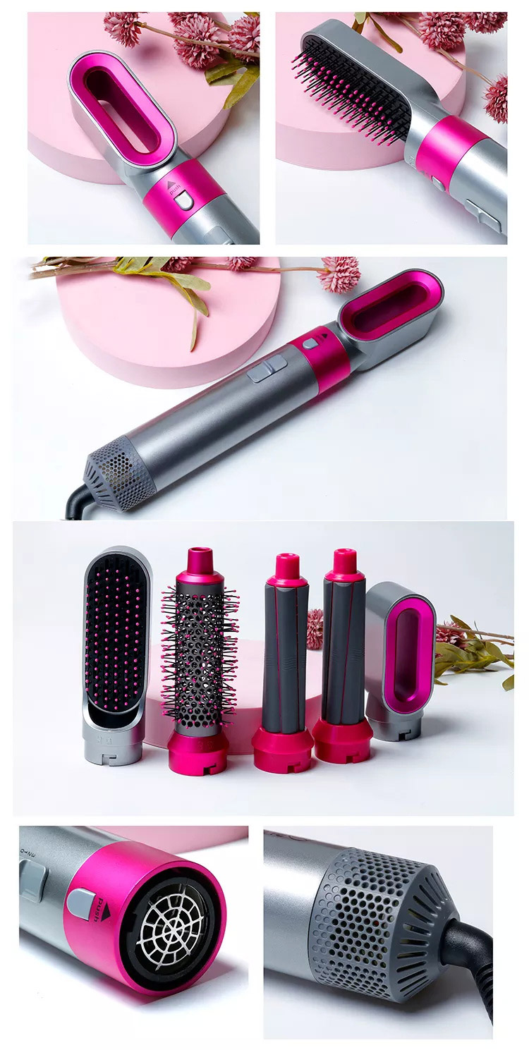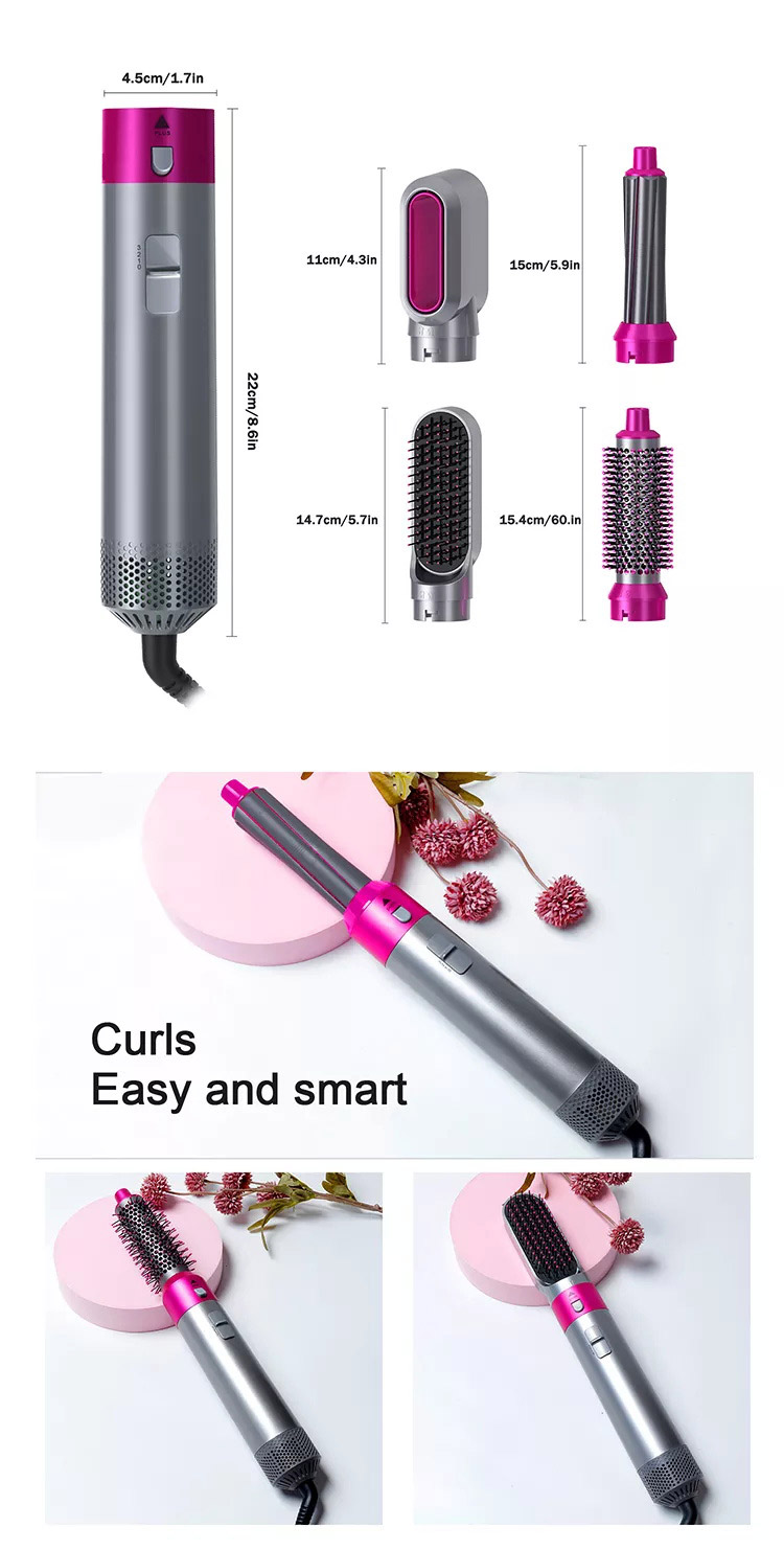 The hot air brush dryer for women comes with five interchangeable brush attachments that make straightening, curling, volumizing, and scalp massaging a breeze. Combining blow drying with styling brushes, can fit different hair lengths and create different styles.